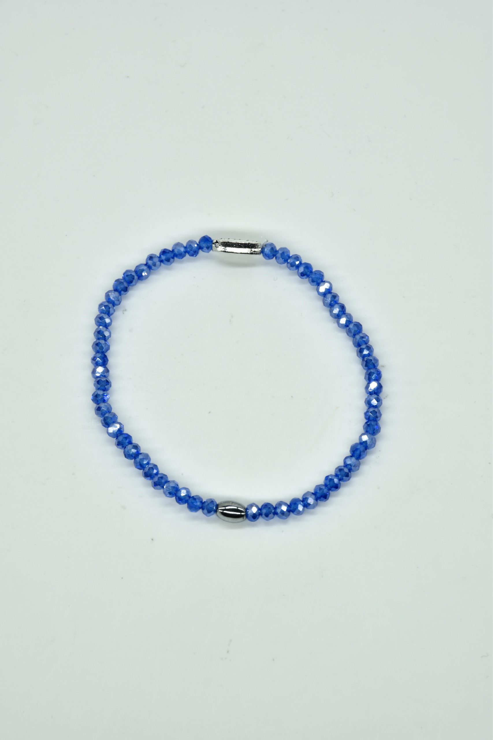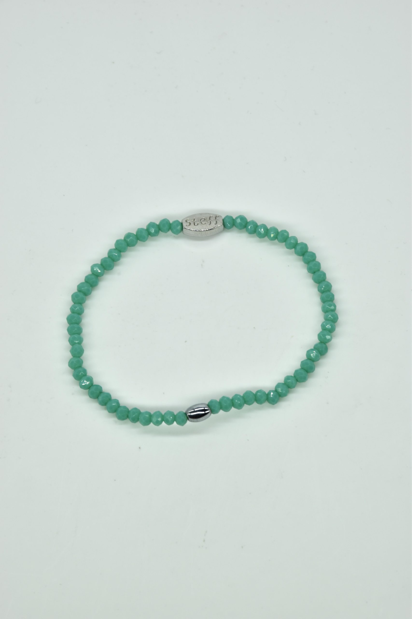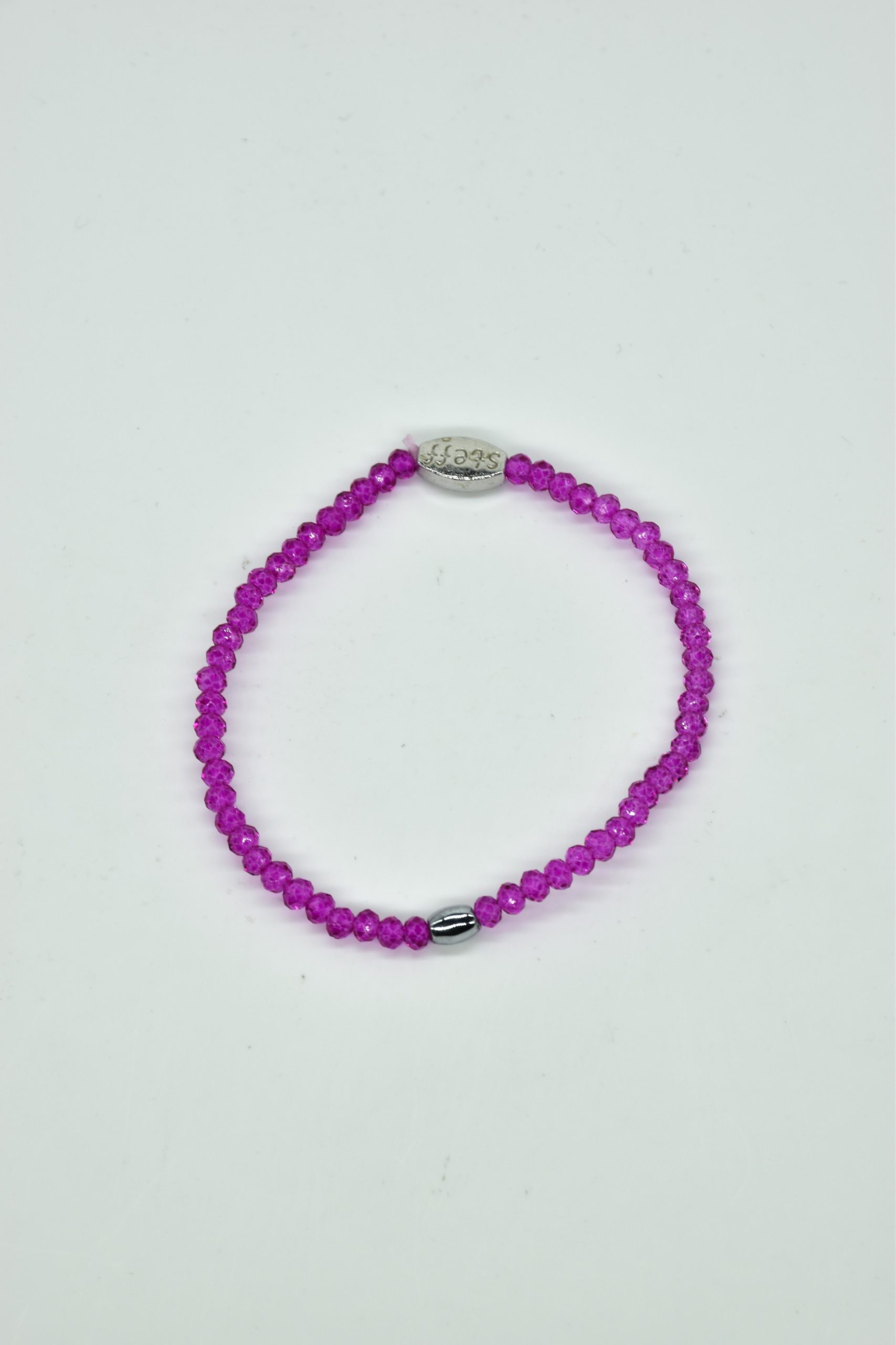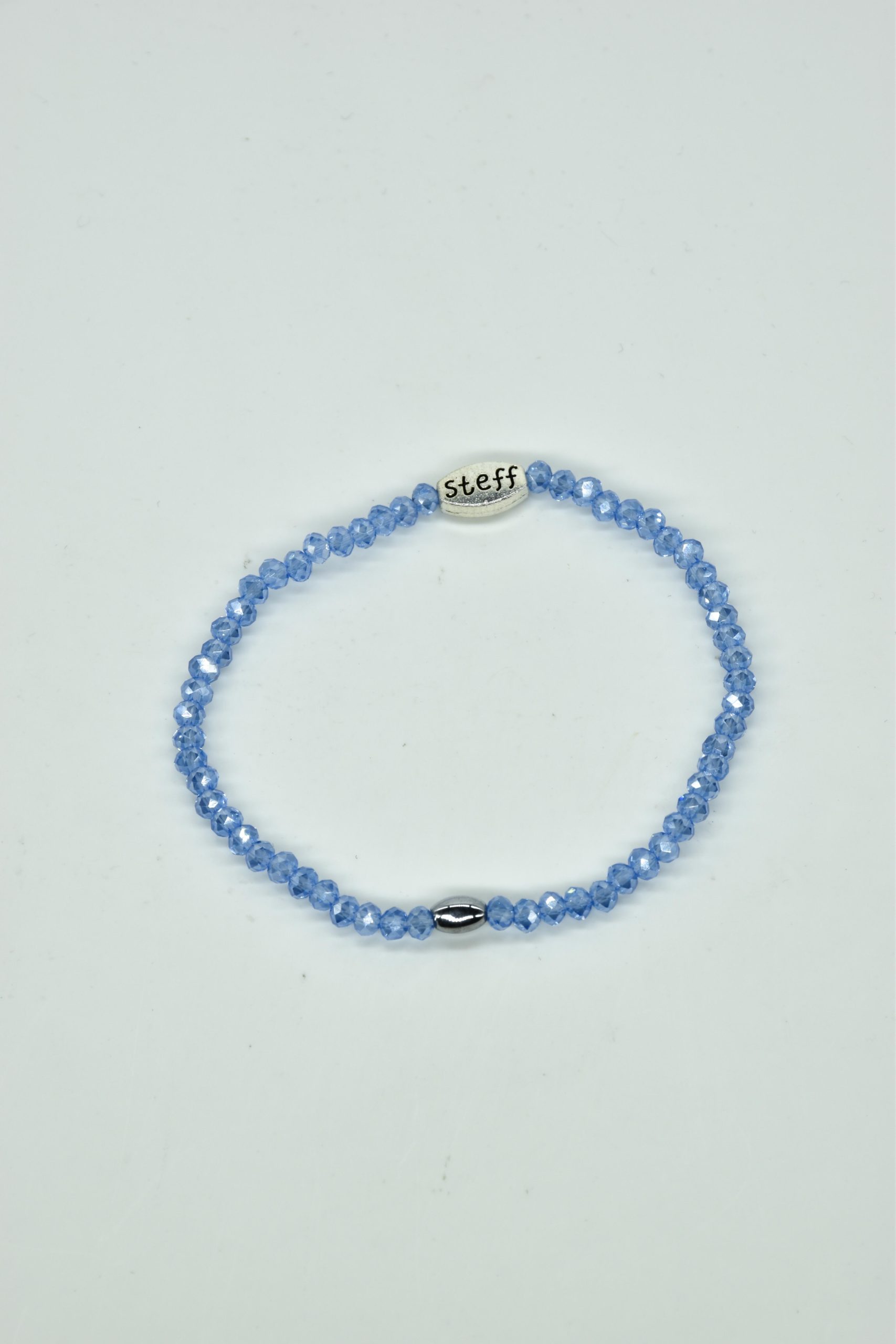 Claudia is prachtig in haar eenvoud. Dit is een armbandje van hele fijne facet geslepen kristallen kraaltjes met een ovaal metalen kraaltje in het midden. De armband is 18,5 cm in omtrek en met liefde uitgezocht door Steff. Natuurlijk is ook dit armbandje nikkelvrij.