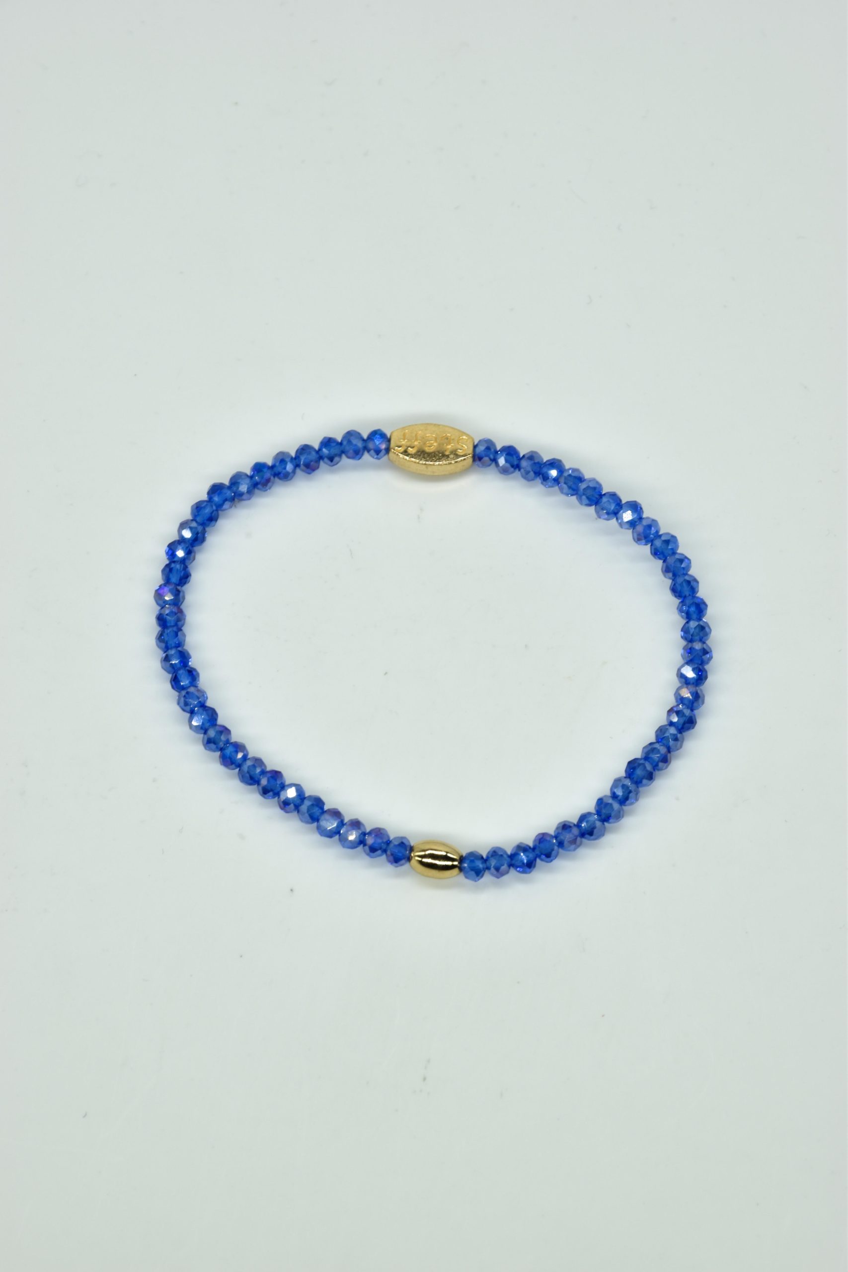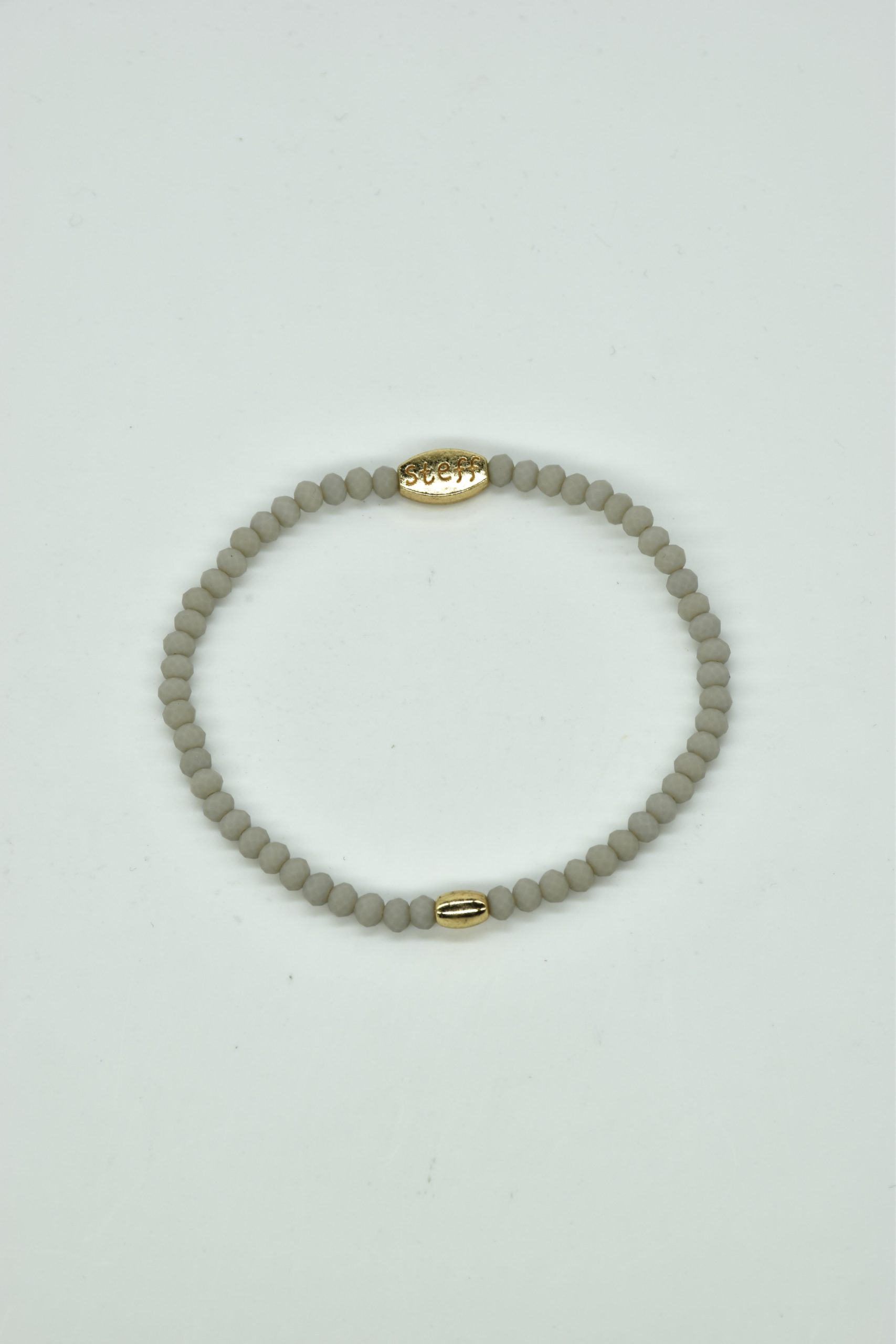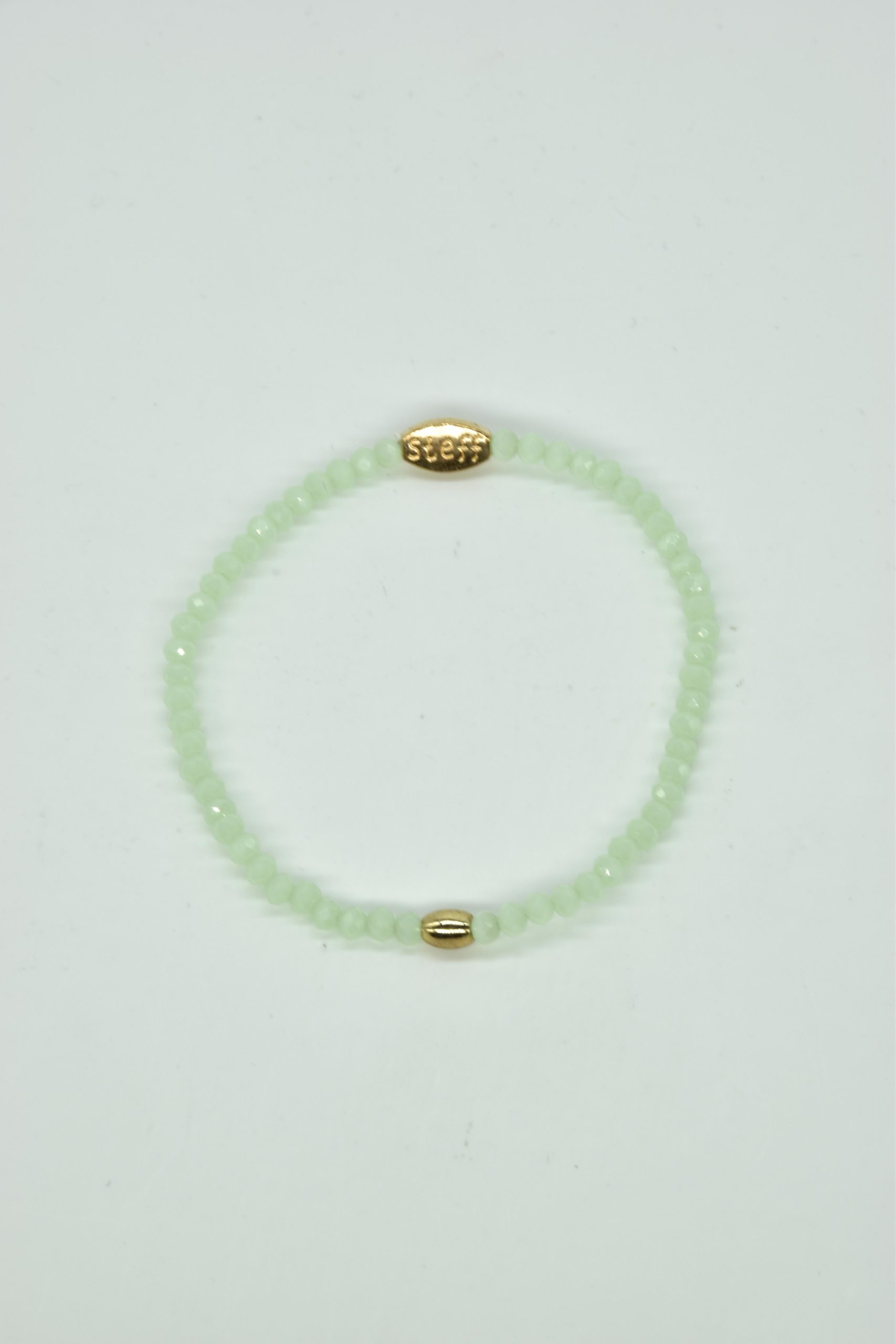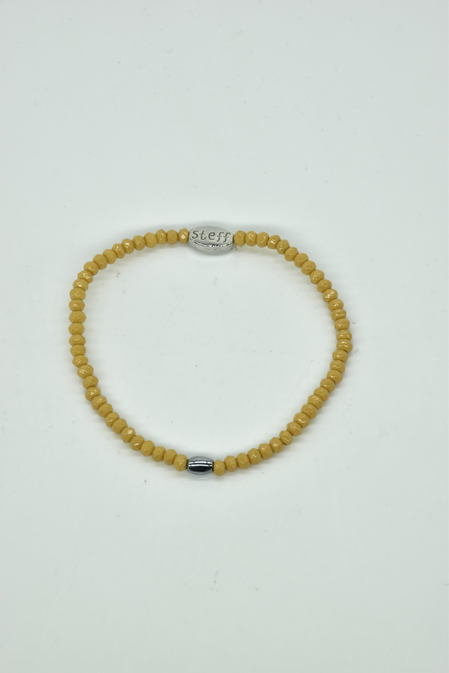 Claudia is prachtig in haar eenvoud. Dit is een armbandje van hele fijne facet geslepen kristallen kraaltjes met een ovaal metalen kraaltje in het midden. De armband is 18,5 cm in omtrek en met liefde uitgezocht door Steff. Natuurlijk is ook dit armbandje nikkelvrij.
