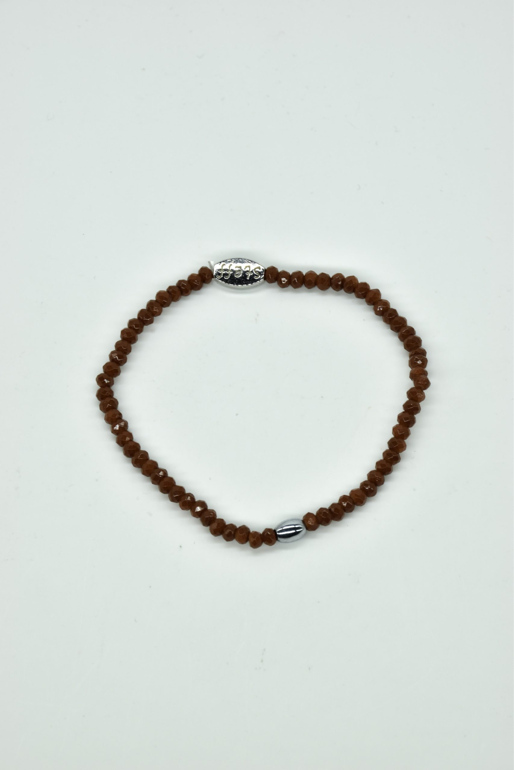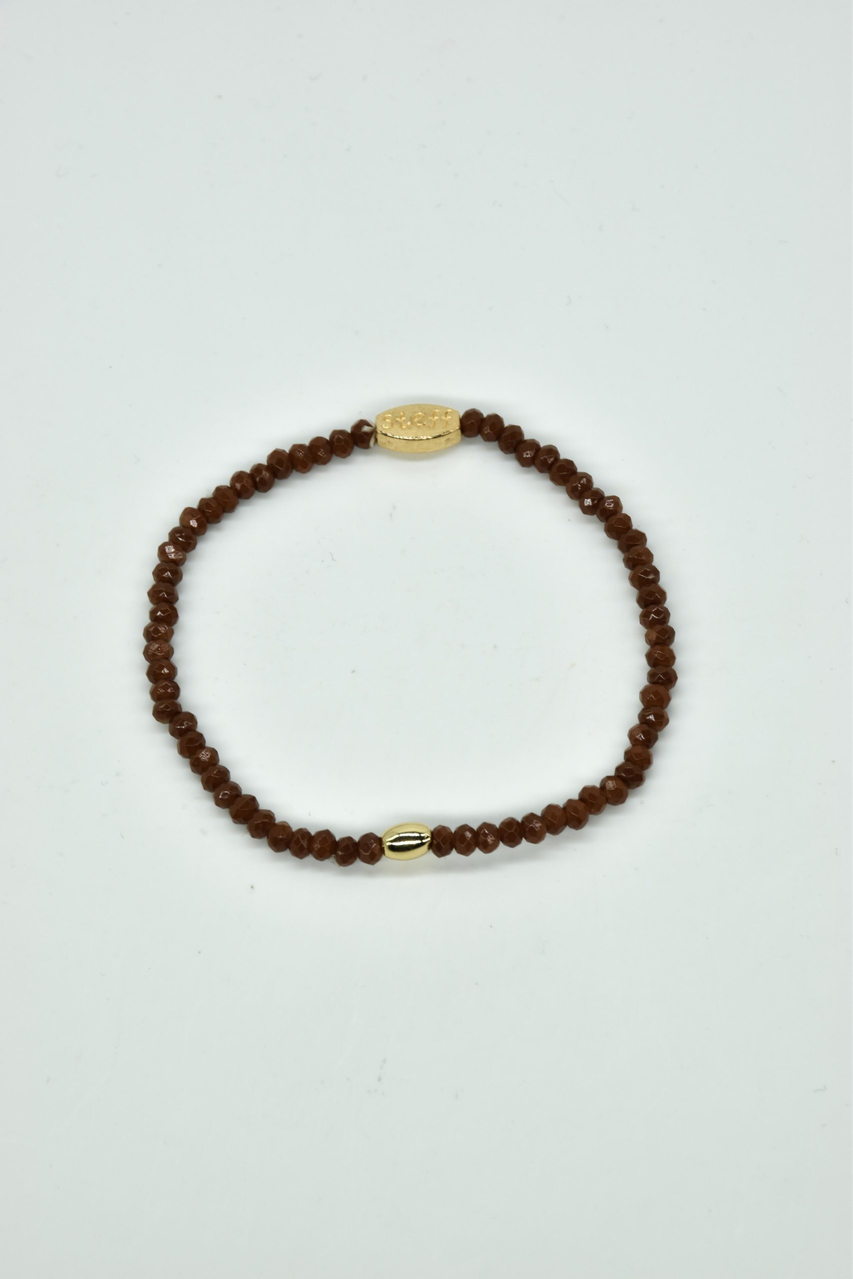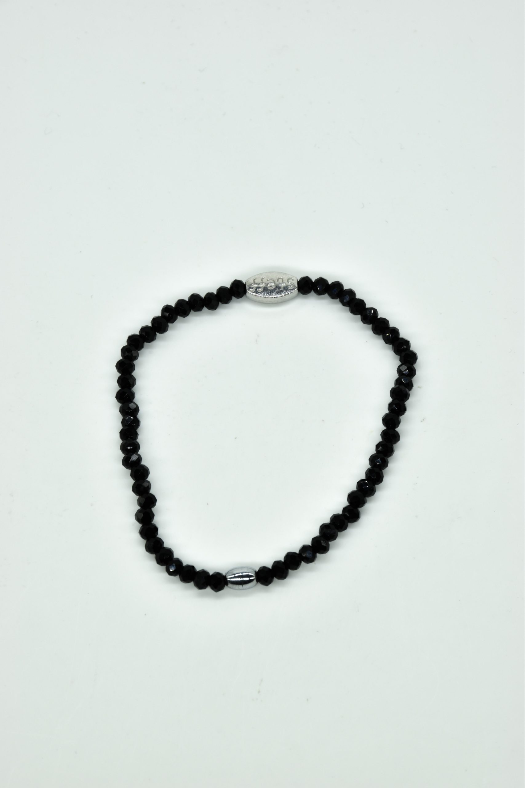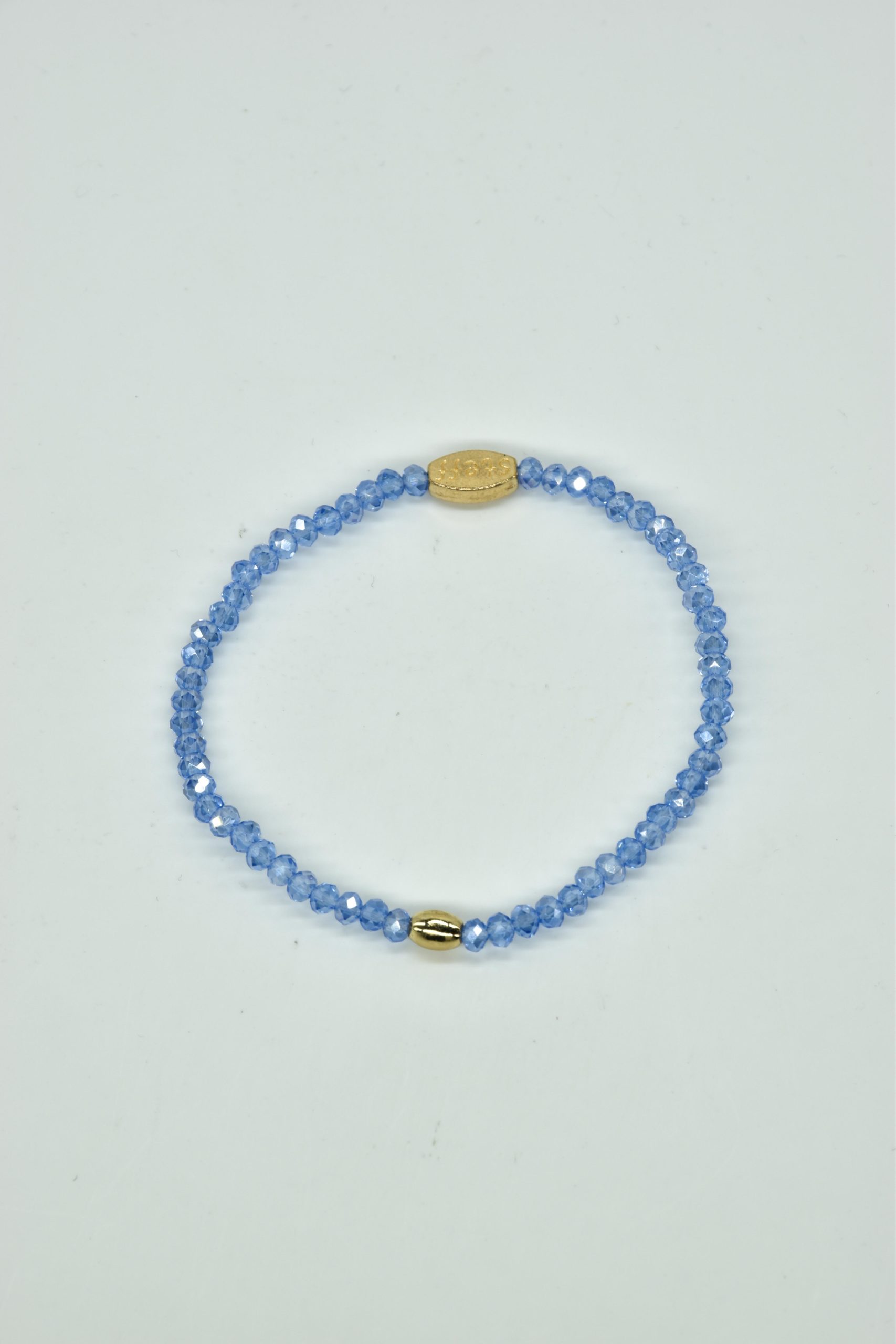 Claudia is prachtig in haar eenvoud. Dit is een armbandje van hele fijne facet geslepen kristallen kraaltjes met een ovaal metalen kraaltje in het midden. De armband is 18,5 cm in omtrek en met liefde uitgezocht door Steff. Natuurlijk is ook dit armbandje nikkelvrij.