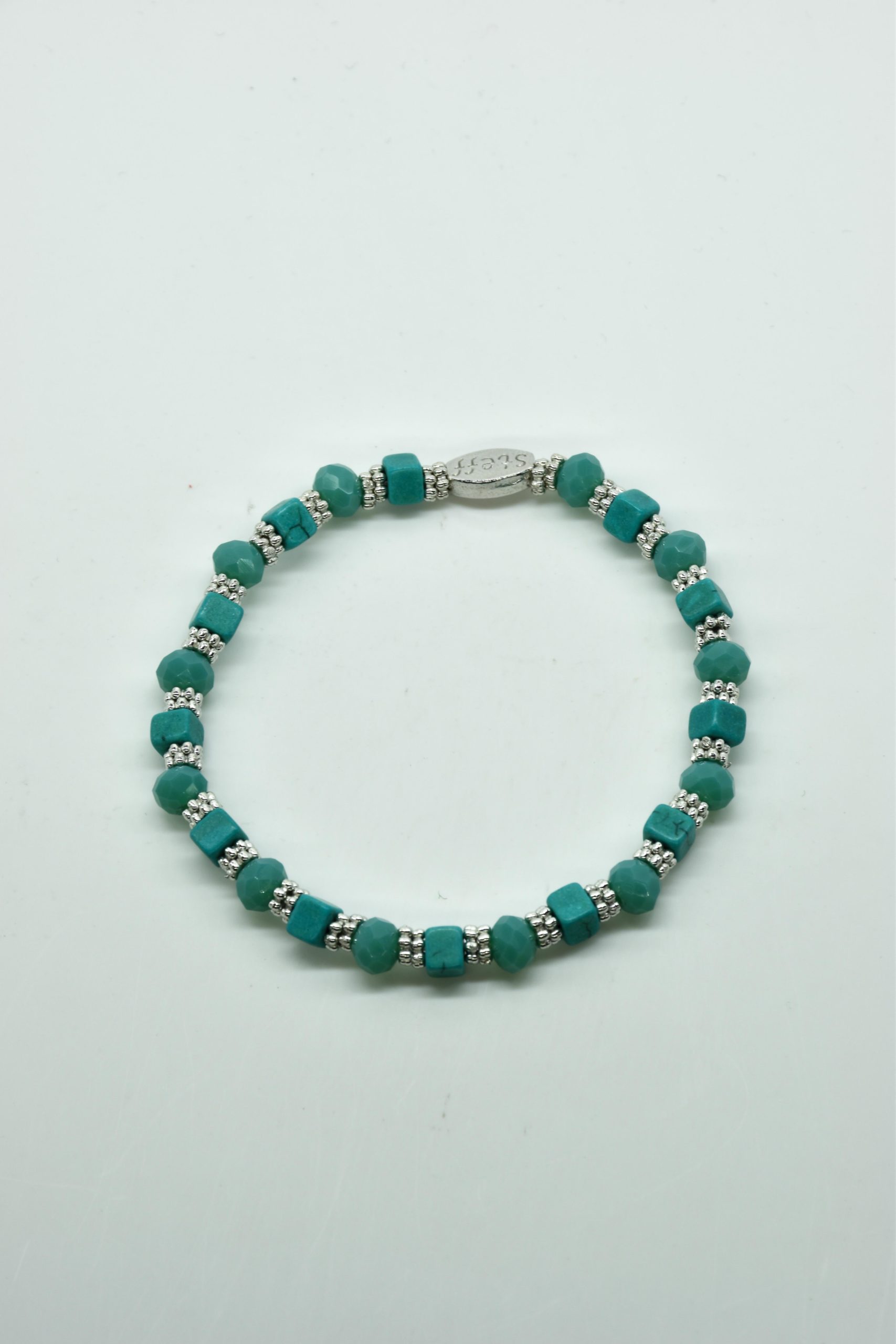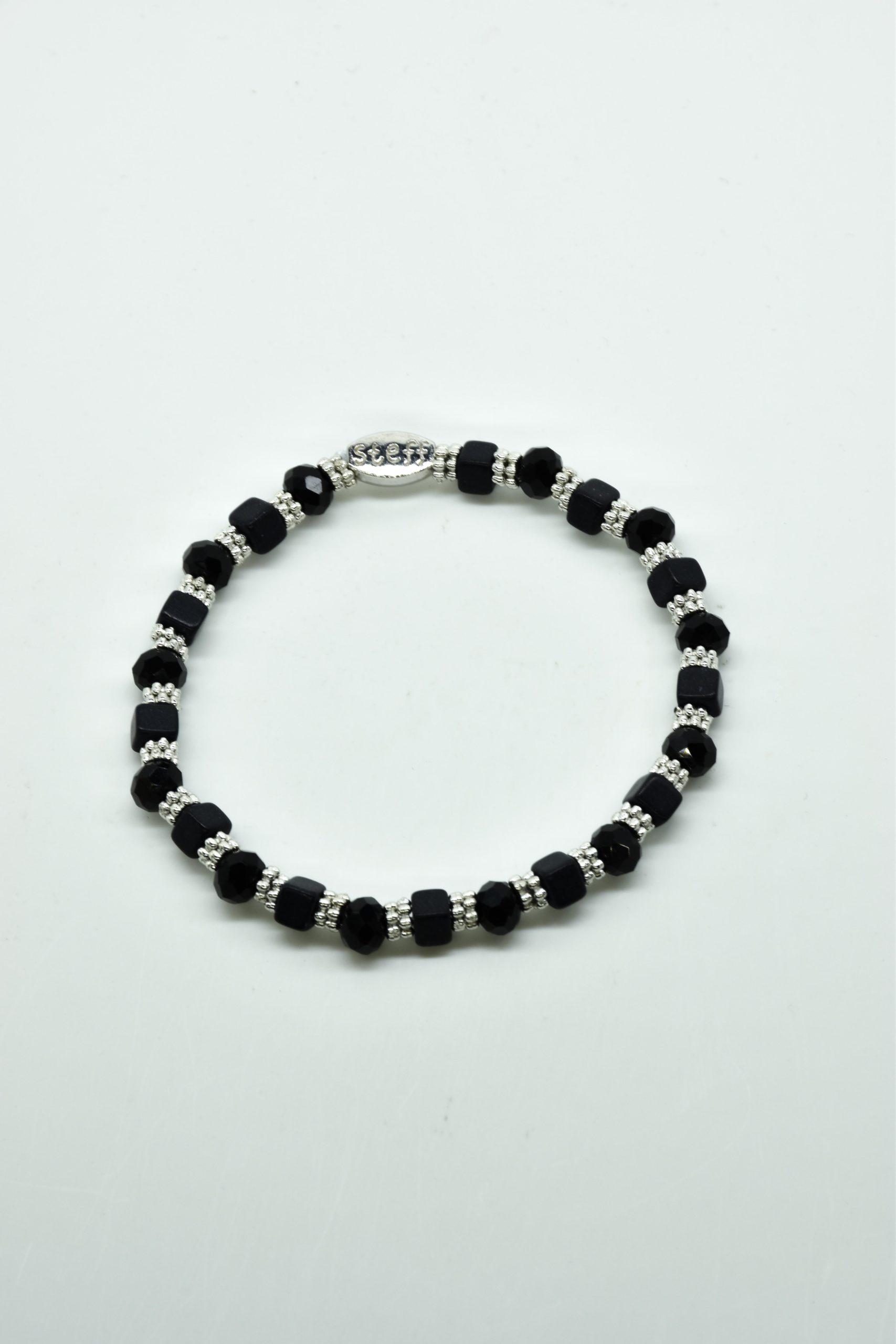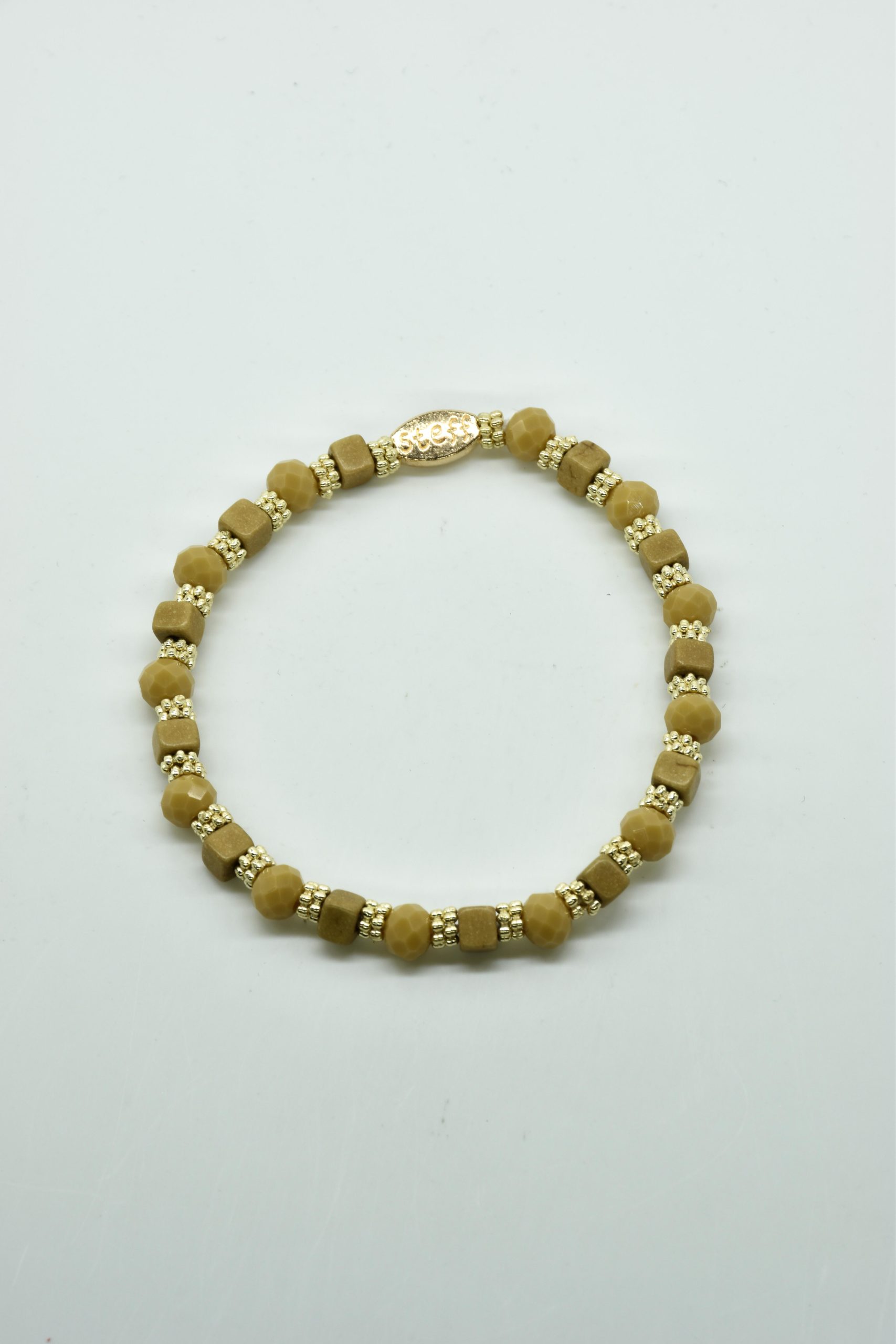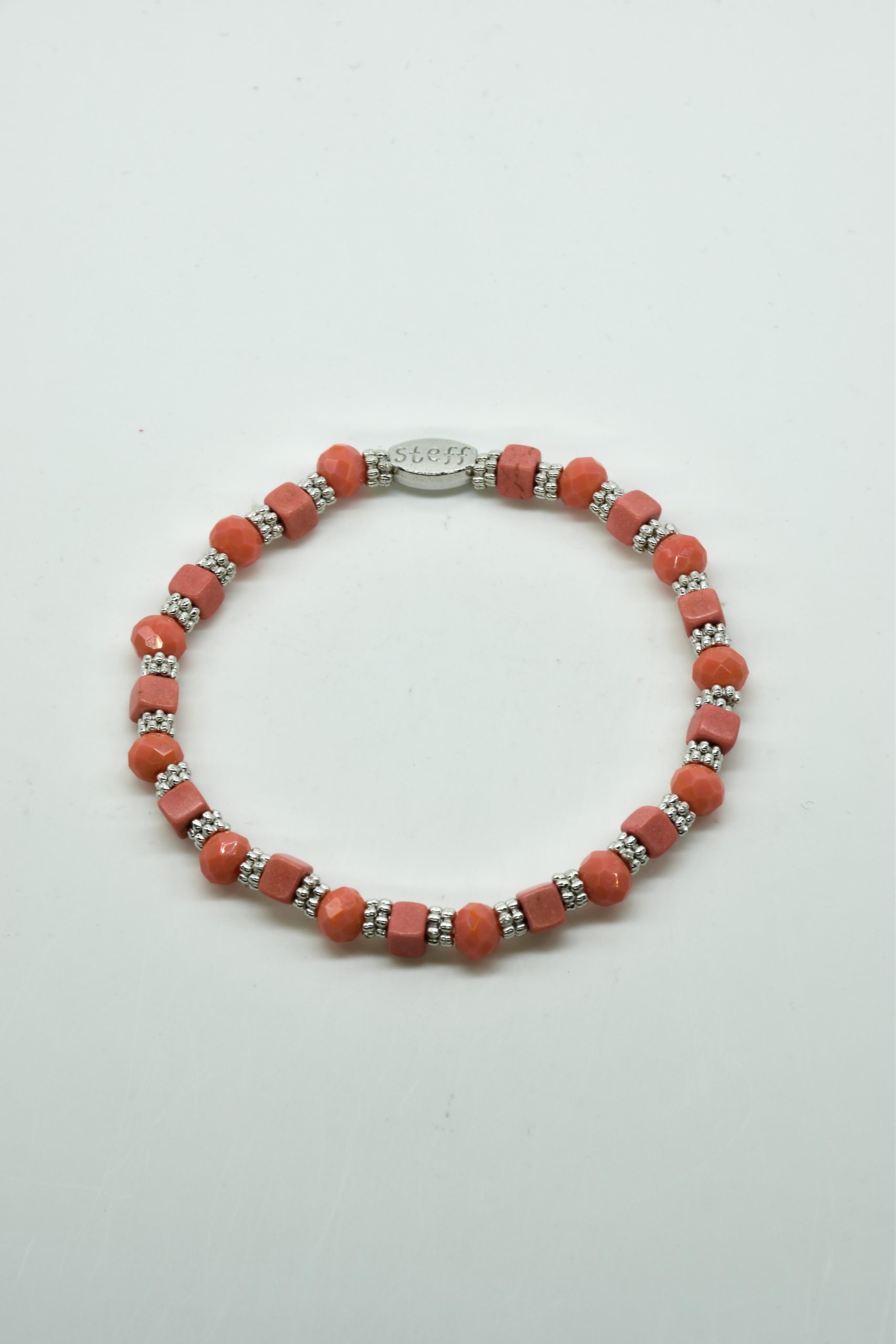 Armbandje Gwen is een leuke speelse combinatie van facet geslepen kristallen kraaltjes in combinatie met nikkelvrij metalen rondel kraaltjes en vierkante composiet kraaltjes. De armbandjes zijn 18,5 cm. Deze armbandjes zijn heel goed te combinereen met de zeer uitgebreide collectie van Steff.