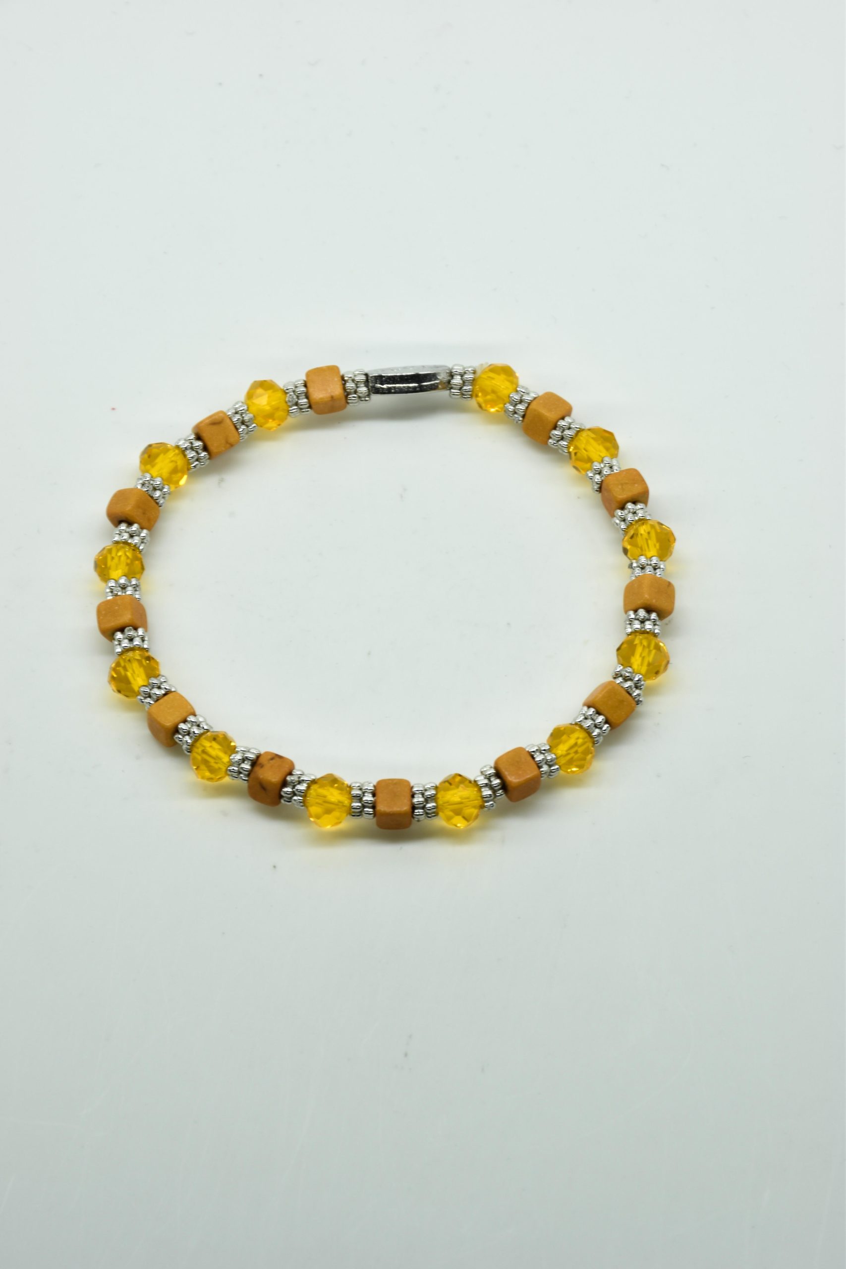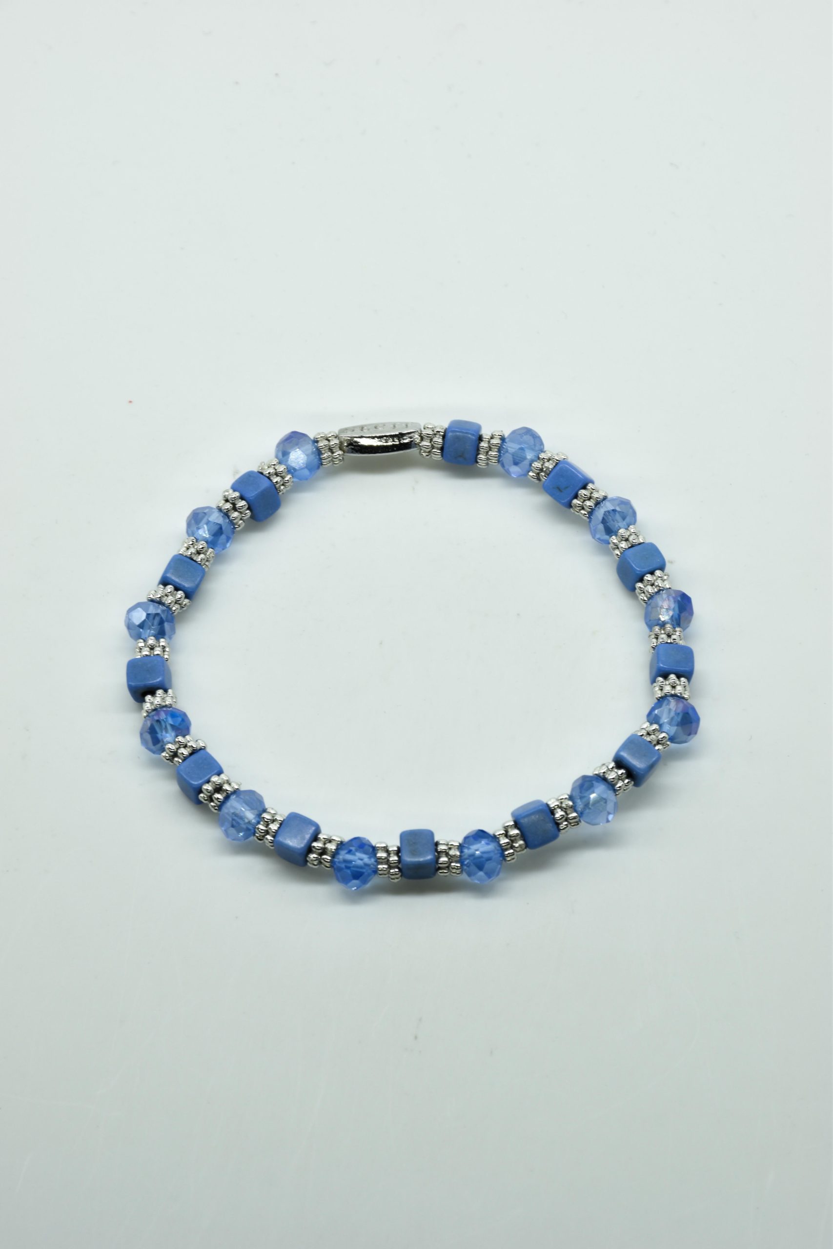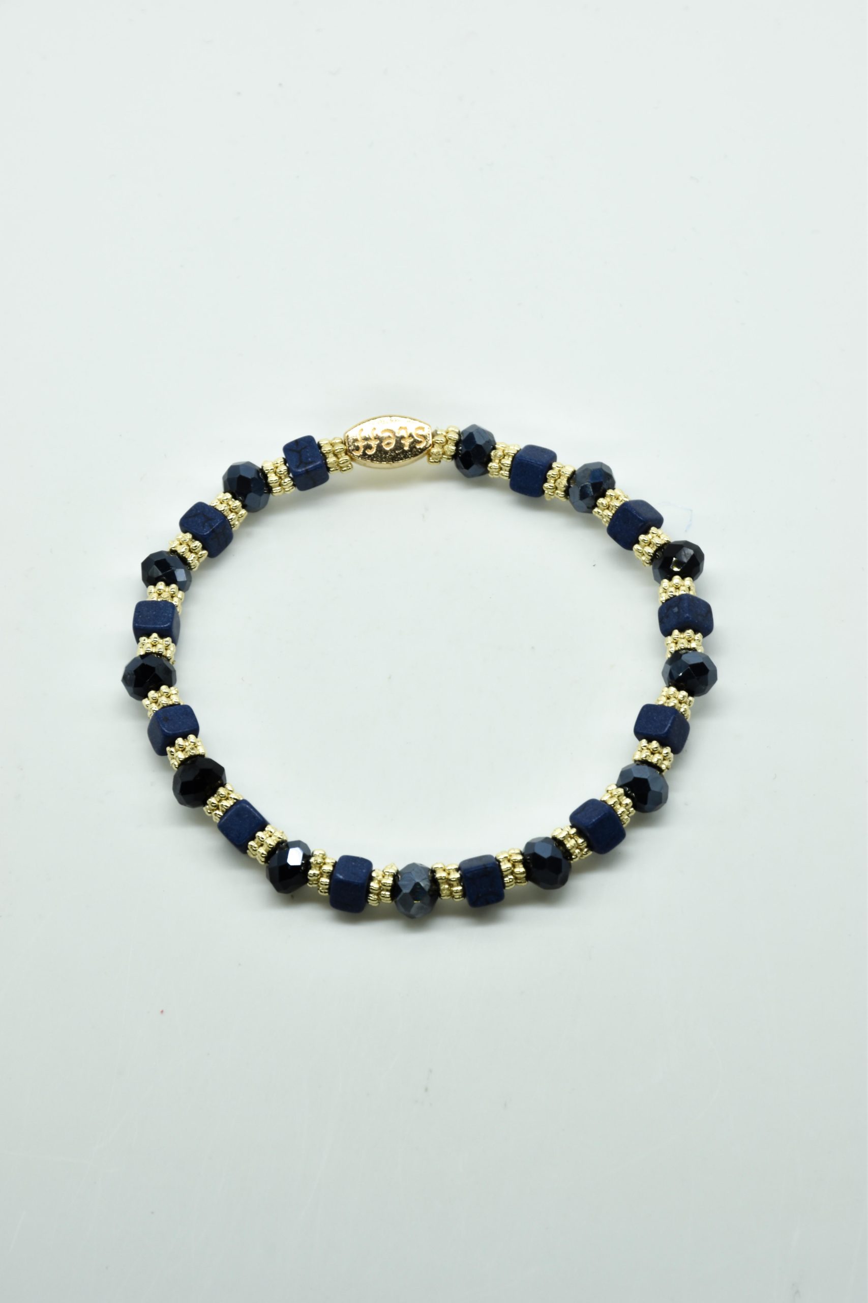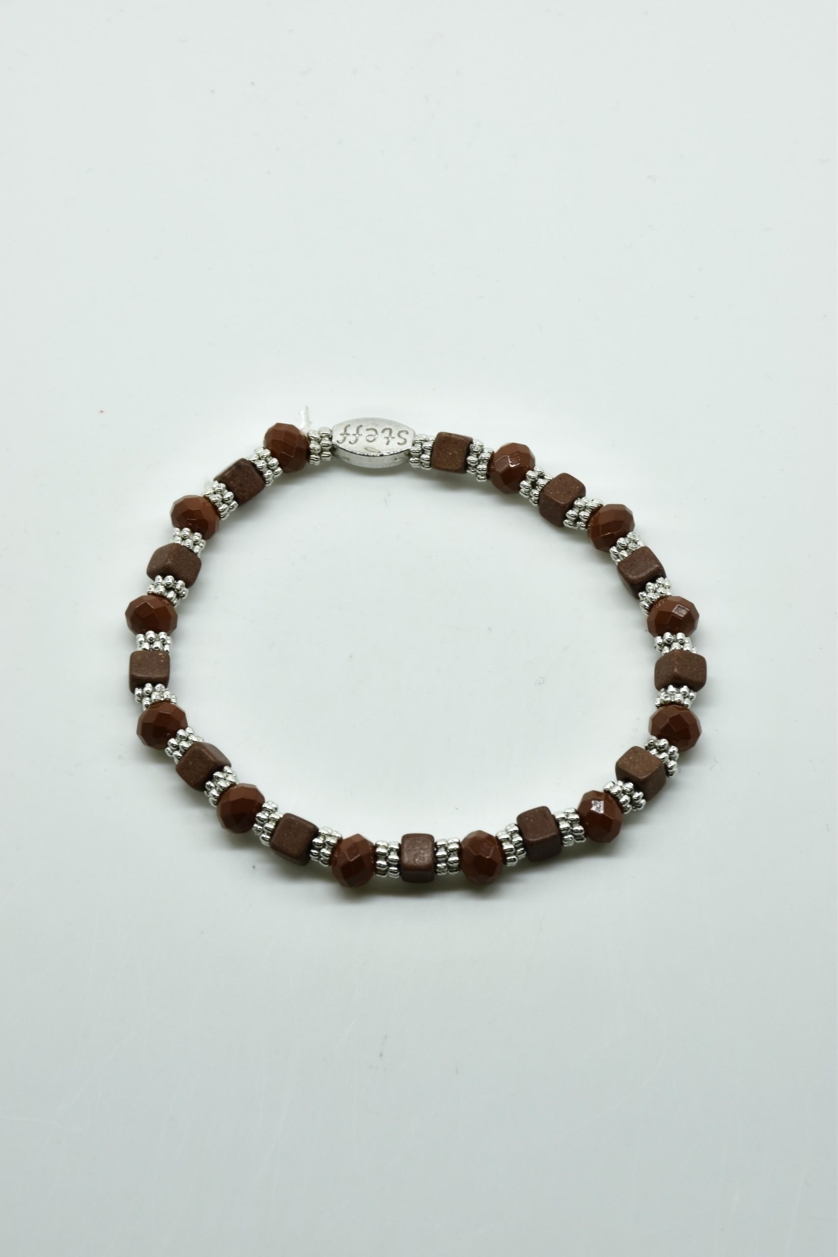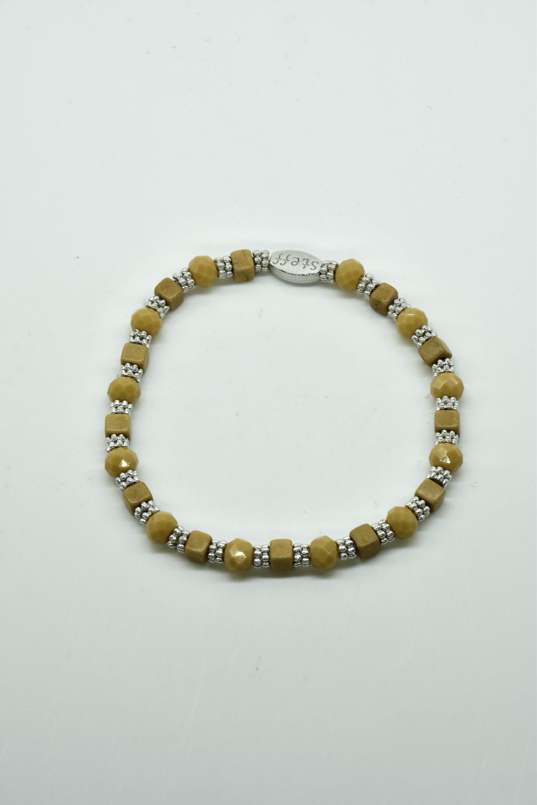 Armbandje Gwen is een leuke speelse combinatie van facet geslepen kristallen kraaltjes in combinatie met nikkelvrij metalen rondel kraaltjes en vierkante composiet kraaltjes. De armbandjes zijn 18,5 cm. Deze armbandjes zijn heel goed te combinereen met de zeer uitgebreide collectie van Steff.