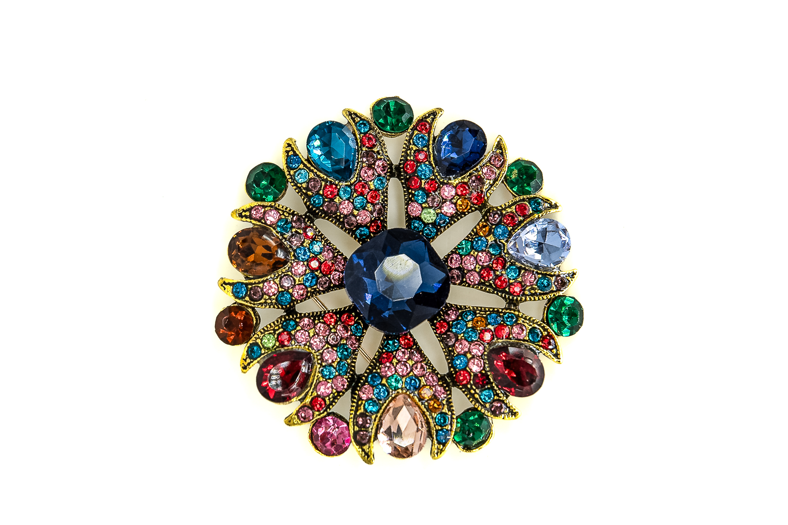 Voeg een vleugje kleur en glamour toe aan je stijl met deze schitterende multicolor bloem broche van Stras4you – een accessoire dat gegarandeerd de aandacht trekt.