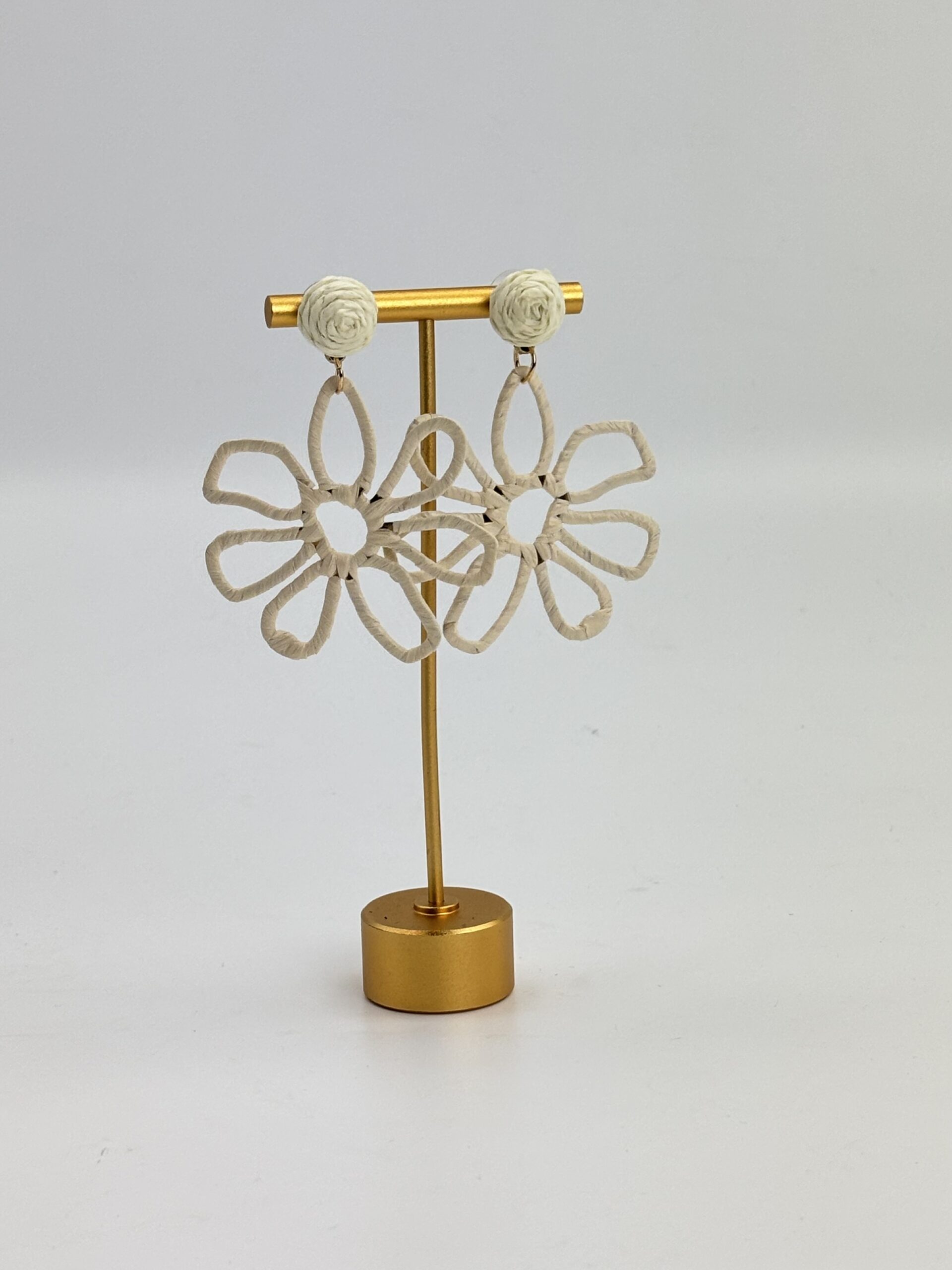Breng een speelse en stijlvolle touch aan je look met de Florien oorbellen! Deze opvallende oorbellen in prachtige tinten hebben een uniek bloemdesign van gevlochten raffia. De achterkant is gemaakt van metaal in een elegante goudkleur, wat zorgt voor een luxe uitstraling. Dankzij het lichte materiaal zijn ze comfortabel om te dragen, terwijl ze toch een echte eyecatcher zijn.
